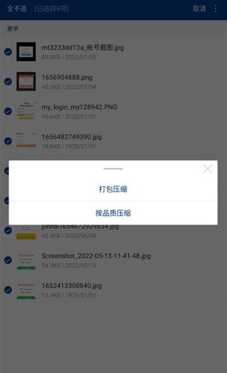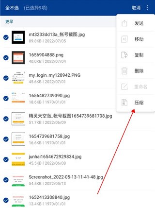 2.用户勾选好文件后,点到右上角的三个点,然后选择压缩;