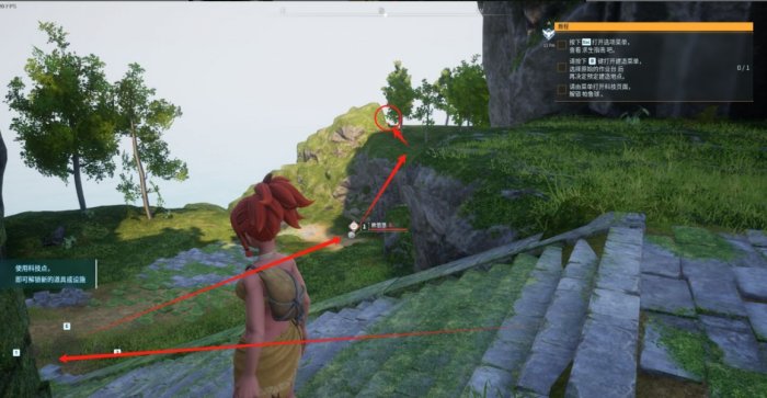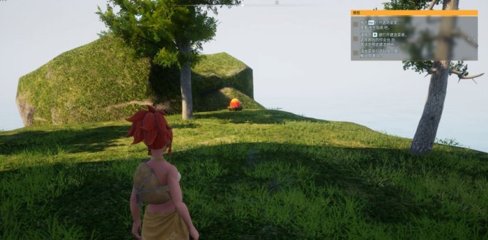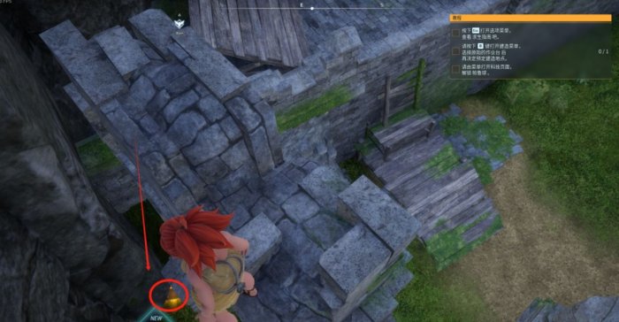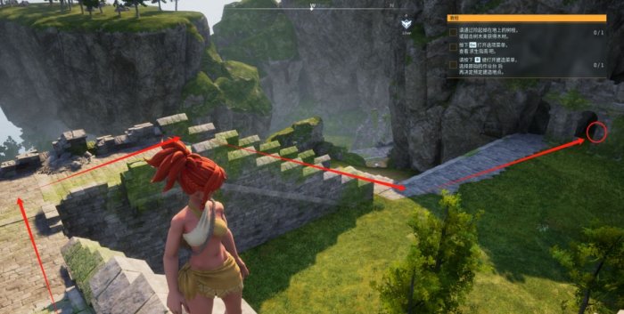 再继续往阶梯下走,按照路线可以看到远方有另外一个蛋,这里需要跳到右边的草地上面,沿路记得也捡一些树枝石头。