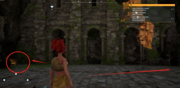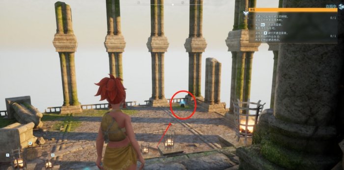 回头走下台阶,径直向前然后看向左边,可以找到第一个宝箱。