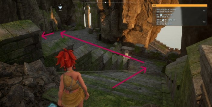右拐下台阶后可以看到一份漂流者手记,拿到手记再顺着右边的台阶下去。