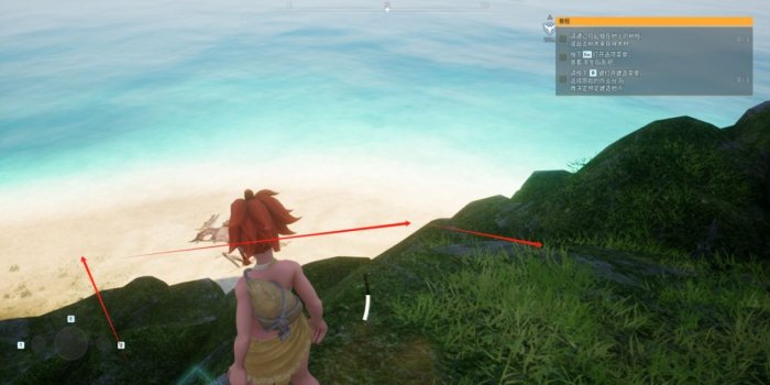 在开场CG后,我们来到初始台地的风气之丘,这里不要急着往前出门,而是回头前往海滩,一路上可以领到三个宝箱、两个蛋、一个雕塑和一本手记。