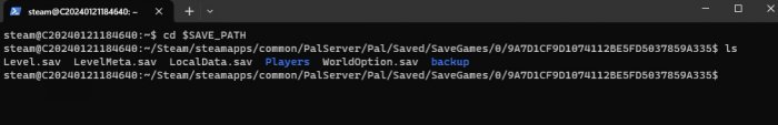 ..../Steam/steamapps/common/PalServer/Pal/Saved/SaveGames/0/<纯数字+字母>/