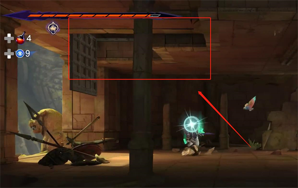 6.消灭敌人之后再往左边走,能够看到头顶有一个打开的入口,跳上去。