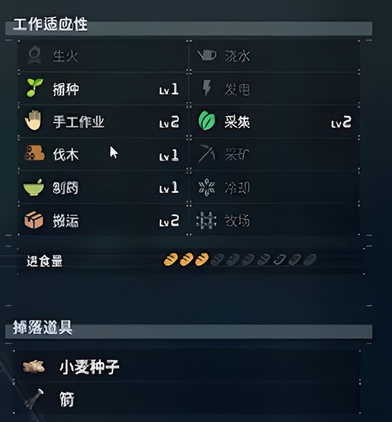 而且同时它还是一个天选打工人,能干一半的工作!播种手工伐木,刨药搬运采集样样精通。