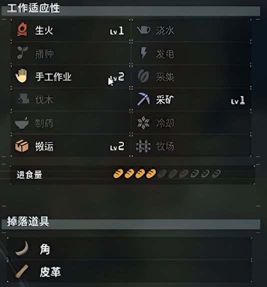 而且它还是一个最强打工人,在初期就可以获得二级的手工,这个在初始宠物当中,几乎是没有的。其自身还附带生火和采矿的属性。可以捕获几只放到你的工地上作为生产力。