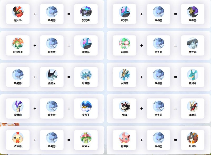 幻兽帕鲁中唤冬兽参与的配种公式一览