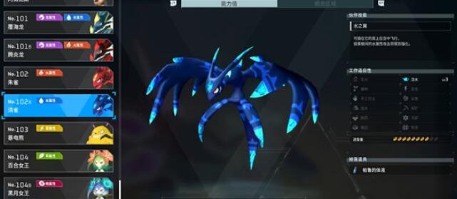 帕鲁伙伴技能:水之翼(可骑在它的背上在空中飞行,骑乘期问的水属性攻击将得到强化。)