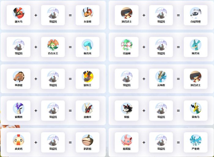 幻兽帕鲁中雪猛犸参与的配种公式一览