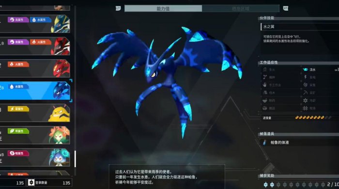 水之翼:可骑在它的背上在空中飞行,骑乘期问的水属性攻击将得到强化。