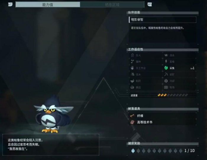 暗影睿智:若它在队伍中,暗属性帕鲁的攻击力会有所提升。