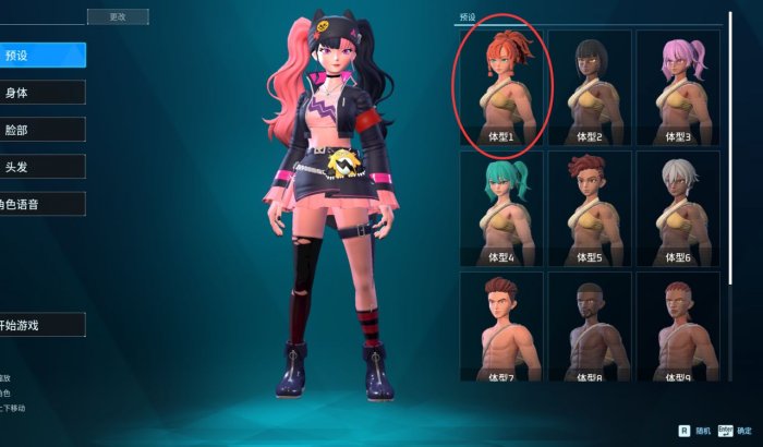 体型选择默认体型1,除声音以外其余建议不做变更。(如原来存档也是默认1没调整脸型可直接打开老存档)