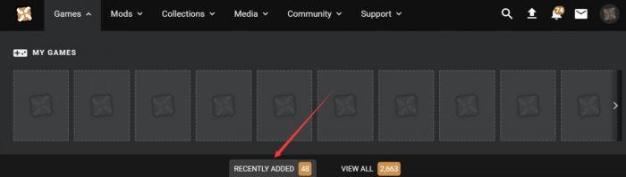 2、在主页面点击games点最下面最近添加,找到palworld