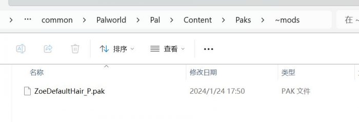 6、下载完成并解压,将此文件拖入Steam\steamapps\common\Palworld\Pal\Content\Paks\~mods中(~mods需要自己创建)