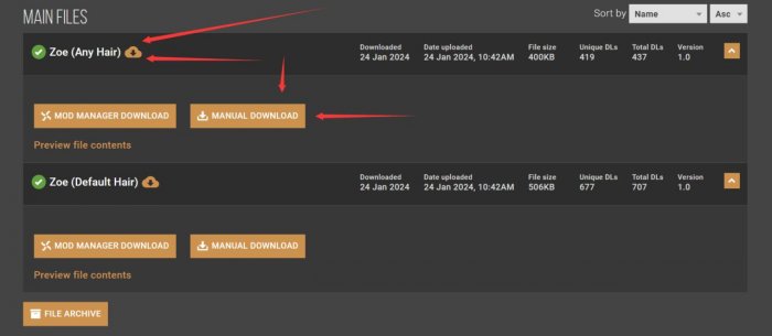 5、选择any hair或default hair版本下载(区别在是否包含zoe发型)