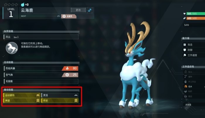 如下图在帕鲁信息页面左下角【被动技能】处最多可拥有4个词条,而每个词条带来的效果均不一样,以下图云海鹿为例。