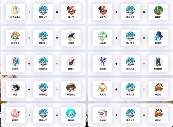 幻兽帕鲁中有黑月女王参加的配种公式一览