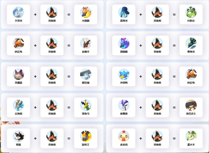 幻兽帕鲁中荷鲁斯参与的配种公式一览