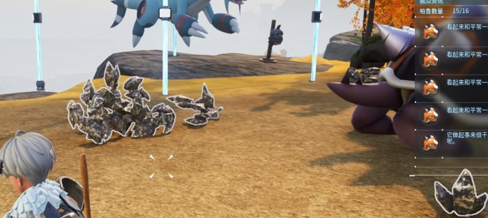 可以放2到3只有伐木能力的宝宝,但是注意!这几只宝宝,一点要具有搬运能力!尽量做到除了龟龟以外,每个宝贝都有一定的搬运能力,不然就会是满地矿石。