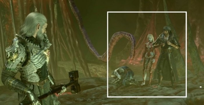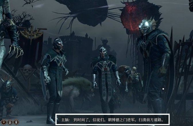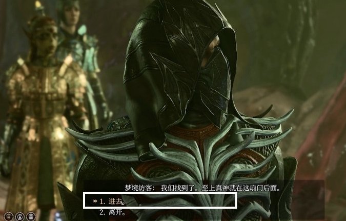 来到底层,与肉门互动,选择进去就会触发BOSS三人组的过场剧情