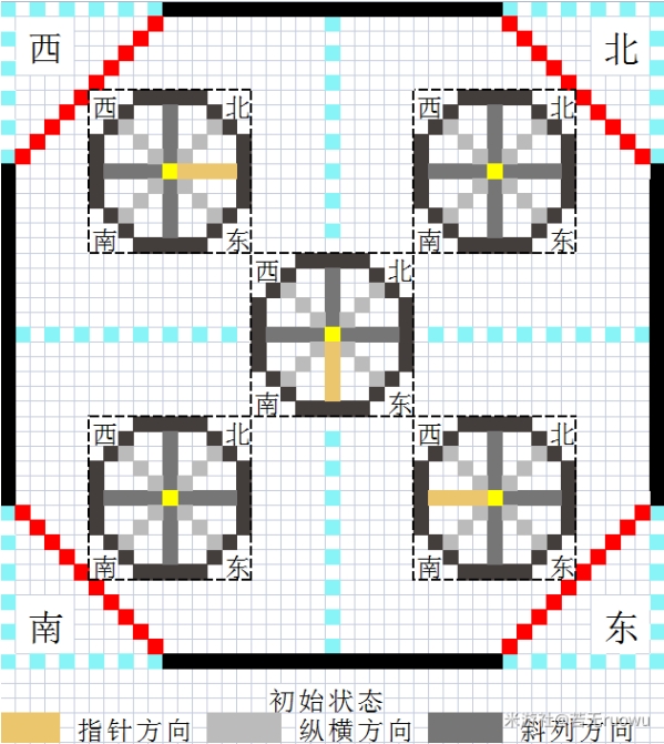 机制详解中的第6点是操作的重要一点,也就是说我们可以通过简单的加减法计算加画图将大齿轮的方向提前旋转至预定位置,然后再放上小齿轮就能使其相对。