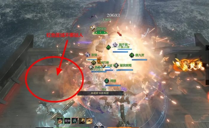 应对方法:团长提前分配好,有一名远程玩家负责拉这个圈。剩下的玩家抱紧,两个铁衣开金刚套盾硬抗。最远的玩家跑到角落去排圈。