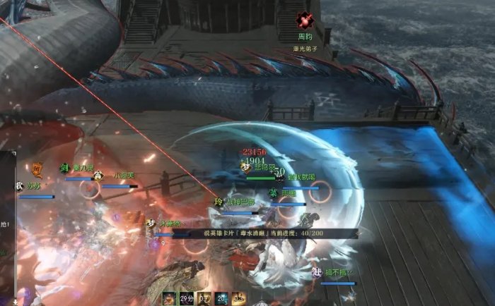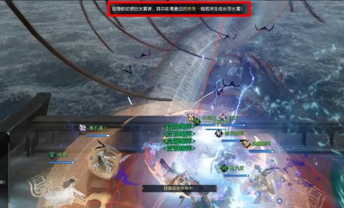 机制效果:BOSS会点名4名玩家脚下出红圈,距离BOSS最远的玩家会在脚下留下一个水圈。