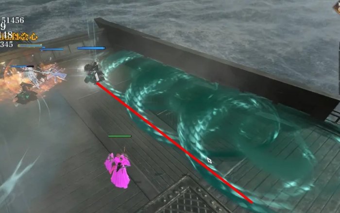 机制效果:如图所示,BOSS只会在船的4个位置出现。每次遁走会有击飞效果。