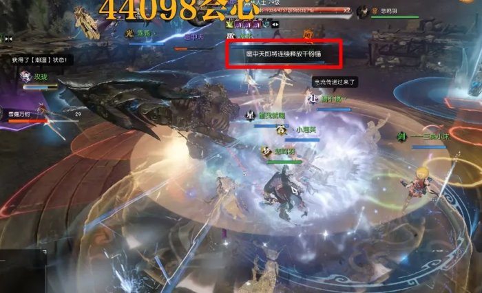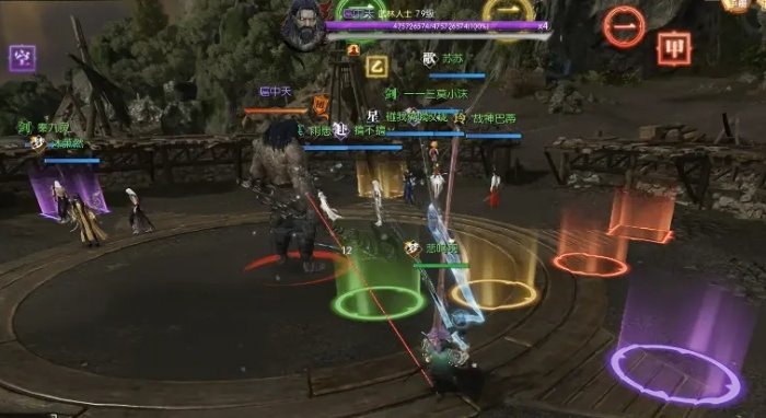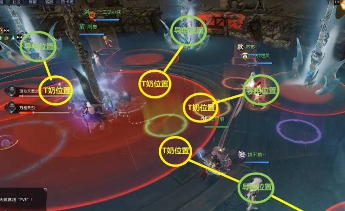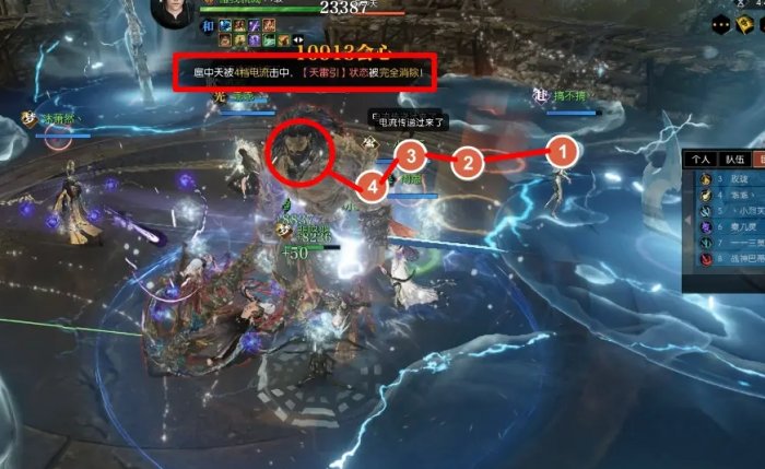 ④获得【潮湿】状态后,4名玩家分别站在甲号点、1号点、2号点、3号点,电流会从甲号点开始陆续传导到3号点击中BOSS。就可以破除天雷引的效果了。