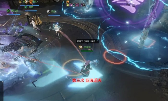 机制效果:BOSS朝向第一仇恨的玩家释放巨浪,并施加潮湿状态。连续释放三次。