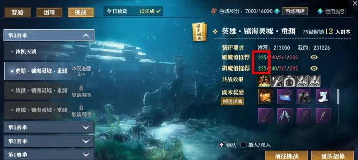 ③老一扈中天要求DPS破魔达到225点,铁衣御魔达到225点。