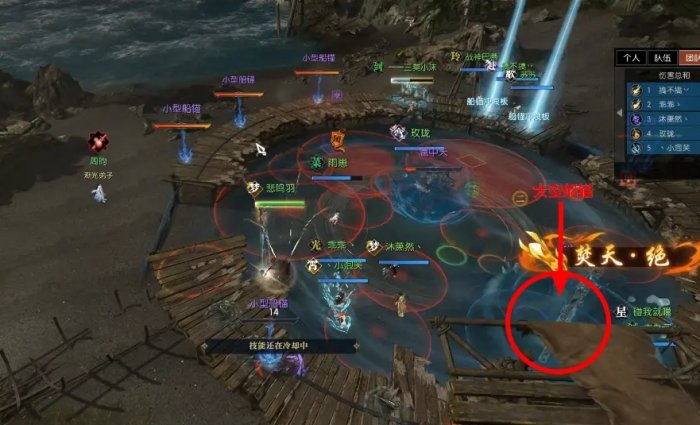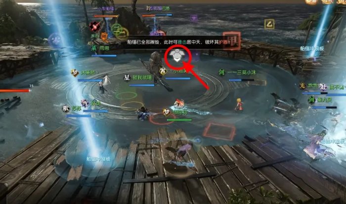机制效果:BOSS进入【天雷引】状态,然后会朝向大团扔出船锚。