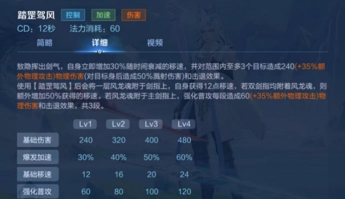 三技能跟前两个技能一样是挥出剑气,但是能够立即获得移速加成,还能够带来击退的效果。风龙魂叠加以后,自身的移动速度将会变得更快。除了这三个技能以外,就是他的大招,开启之后敖隐直接飞天,长达4.5秒的时间不能够被选中,上官婉儿看了都要流泪,这些可以自己提前选择结束。在天上的过程中敖隐会向前俯冲,对路径上敌人造成减速和伤害,并且在落地点带来眩晕,控制敌人。