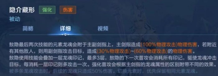 敖隐的被动技能是释放技能,叠加三层龙魂以后就可以达到强化普攻,可以用两把飞剑进行攻击。而且,这两把飞剑能够达成分裂的攻击效果,拥有多名敌人的时候都会受到伤害,不管打出来的是普通伤害还是真实伤害,都能够达到暴击能力。因此,拥有强化普攻之后,敖隐在游戏中的收割能力将会变得更强大。