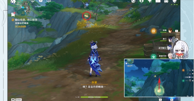 5.然后向西走,离开翘英庄,跟随金色鲤鱼前进(我们按T就能进入水珠,再按左键就能发射出去)