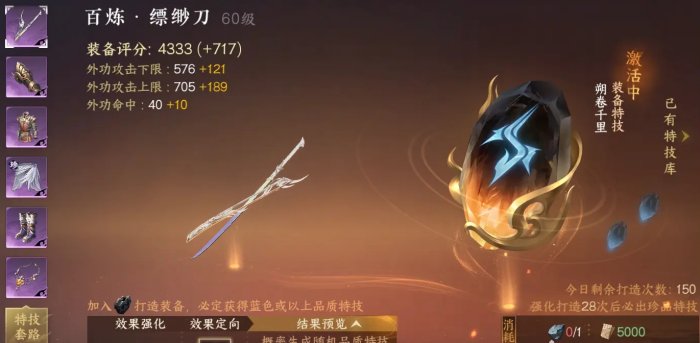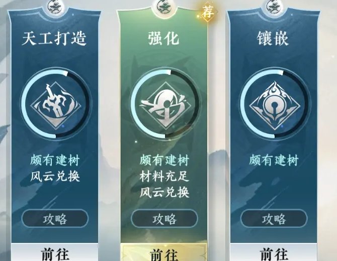 打造里分为三个小类:天工打造/强化/镶嵌