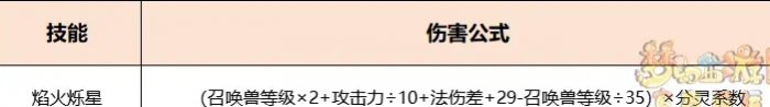 1、在不考虑高级魔之心、风起龙游、修炼差等其他加成的情况下,【焰火烁星】伤害公式为: