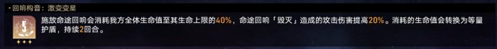 4、命途回响只建议在全队血量大于40%以上时使用,满血最好,这样收益才是最大的。如果队伍中有角色血量低于40%,此时就不建议用命途回响。