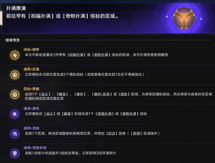 只走带有【信标】效果的区域,因为骰面被动为每走一种【信标】就能获得一个祝福。每个位面最好能走4个以上的不同【信标】,这样才能获得比较多的祝福。