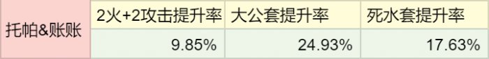 属性套的二件套效果一般为10%增伤,而死水套只要有一个负面效果就可以有12%增伤。所以像丹恒这类用风2+攻击2的就可以改用死水2+攻击2。包括一些用2+2的持续伤害角色,更加能够稳定触发。