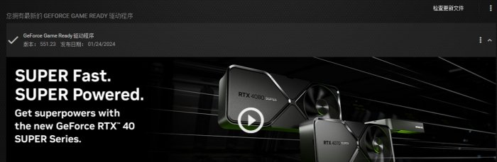 进入英伟达GeForce Experience,将显卡驱动更新到最新版本551.23,这个版本同样给如龙8、铁拳8和雾锁王国提供DLSS支持。