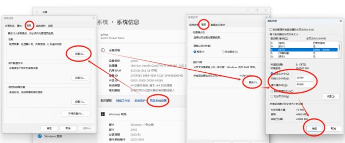 在“虚拟内存”对话框中,取消选中“自动管理所有驱动器的分页文件大小”选项,然后选择需要扩大虚拟内存的驱动器,自定义输入要分配给虚拟内存的初始大小和最大大小,然后点击“设置”按钮、“确定”按钮保存更改,重新启动电脑