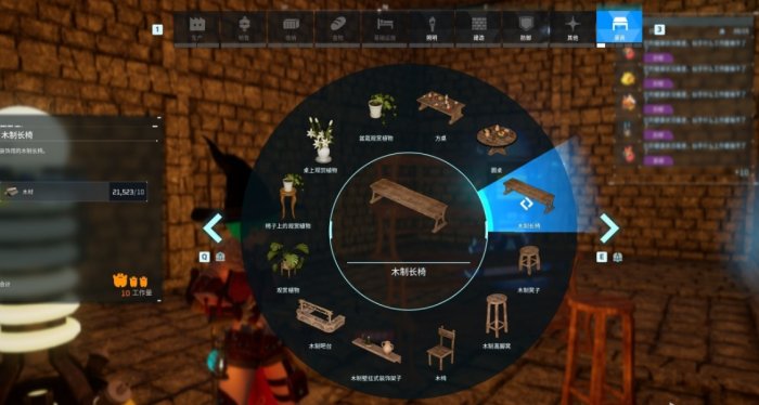 但是没有办法了吗?并不是这样的,我们可以利用家具里的木制长椅来解决这个问题,虽然游戏设计它的本意不处于这个目的,但车到山前必有路,我们只能用尽所有办法达到这个目的。