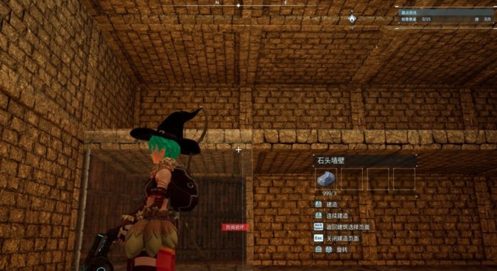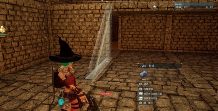 先在上层到下层的链接位置放置石头墙壁,接下来要放置楼梯的侧面区域放置石制三角墙,最后准星对准如图所示的链接区域放置石头楼梯,这样便能制作一个小型的阶梯了。