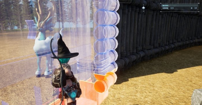 在解锁木头防御墙这一设施后,我们就可以着手建设(当然也可以用石头的)。其原理就是按照帕鲁终端所显示的包络区域围绕一圈,这个说起来简单但实际搭建起来确实需要一些技巧。在操作的过程中需要不断的旋转和平移进行调整才能达到即连续又不超出区域的效果。(一定不要超过帕鲁终端显示的区域,不然过一段时间他们就会腐蚀消失)