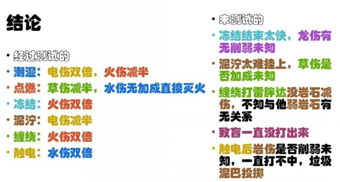岩石系挂上泥泞后,电系伤害减半(一直挂不上,没测出草系是否加成)