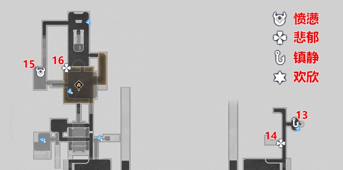 1.合计56个情绪齿轮,10个镇静,12个欢欣,14个悲郁,20个愤懑