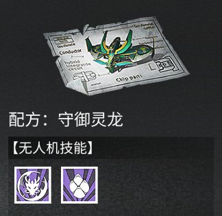 无人机进入休眠状态(敌方视角),在休眠状态中时,守御灵龙无人机会吸收主人身上的控制效果,例如诡异娃娃、混乱效果等,并使得主人获得6秒祝福效果(受到负面效果的持续时长和伤害降低40%)