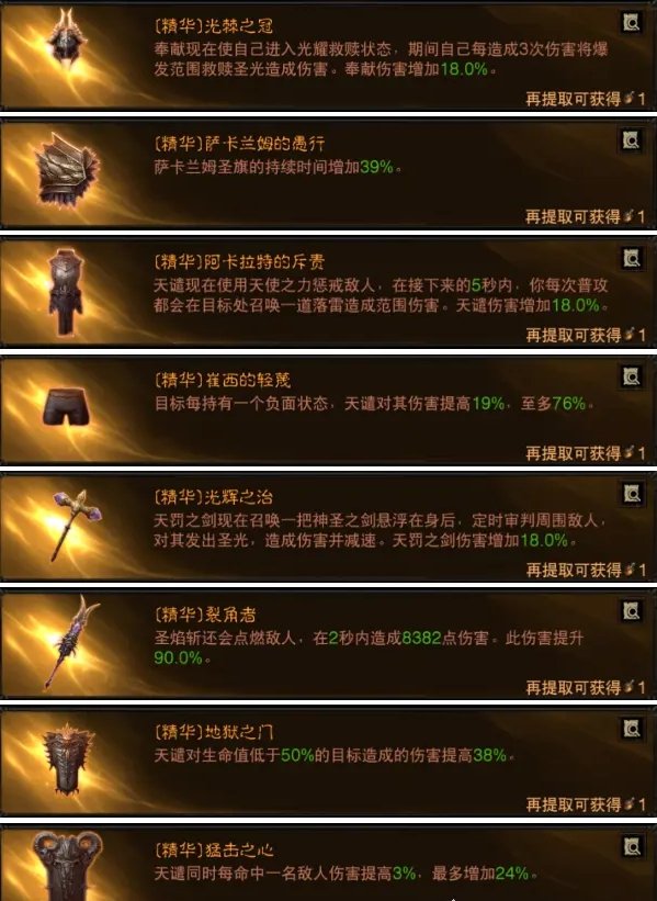 还是和野蛮人掉血的思路一样,个人觉得梦魇5打BOSS时间轴太长,如果我们的技能导致自身还在持续掉血压力太大了,所以放弃主流头部受膏硫磺,而且开圣焰自己掉血,可能BOSS位移走了你还跟不上,白掉血。野蛮人的起码不攻击不会白掉血,感觉受膏硫磺实战效果不好。选择光棘之冠打3次爆一下提高我们的输出,再加上天谴的普攻落雷+悬浮圣剑,明显天谴精华壮丽之心在这个场景是不如阿卡拉特的斥责的。副手小幽也推荐地狱之门,在这种场景里BOSS半血后增伤38%是巨大的提升