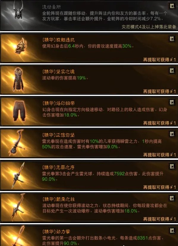 选择了可以跟随自己移动的金轮阵这样伤害才能打满毕竟梦魇5的BOSS还是灵活的,日常站桩可以带头部共情之心,其他选择主要是拉满普攻伤害,3个雷光拳精华+波动拳BUFF普攻+幻身击提高攻速,幻身击位移搭配引路鬼把暴击提升拉满,躲避BOSS的同时疯狂普攻打出持续高伤害。