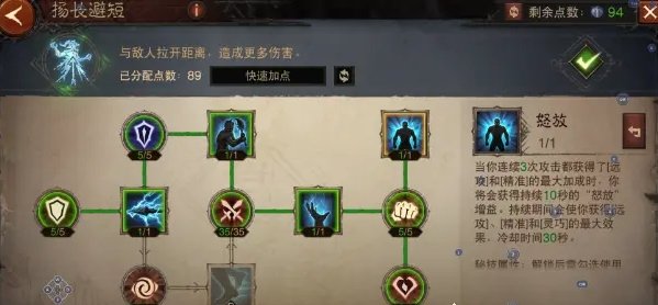 技能:普攻带移动射击、推射、逃脱、憎恨、暗影飞刀